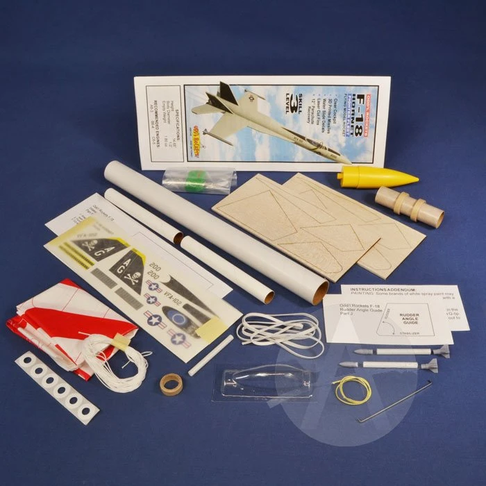 Based on the F18-Hornet, the aircraft of the US Navy’s Blue Angel’s for 34 years, this fighter from Odd’l rockets will surely stop people in their tracks. The rocket features balsa fins, a plastic nose cone, a clear vacuum form canopy, 3D printed missiles and Waterslide decals.