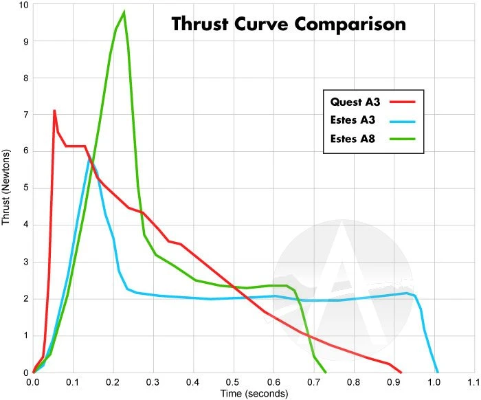 The Quest A3-6 rocket motor isΒ for small light-weight rockets. It features composite propellant, which has twice the energy as a black powder motor. Same size and diameter as an Estes motor, so it fits all your favorite rockets. But this is for single-stage rockets only, as it cannot be staged.Β