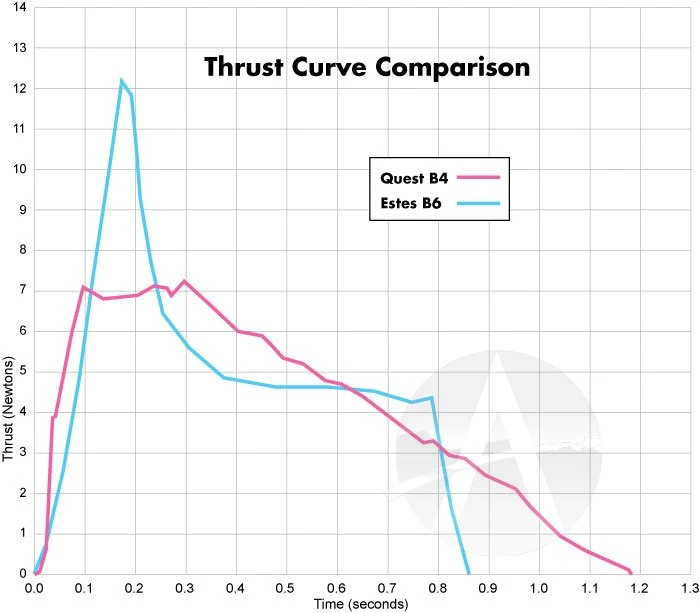 The Quest B4-4 rocket motor is for small light-weight rockets. It features composite propellant, which has twice the energy as a black powder motor. Same size and diameter as an Estes motor, so it fits all your favorite rockets. But this is for single-stage rockets only, as it cannot be staged.