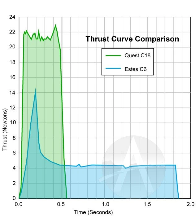 The Quest C18-8 is a great all-around motor for your typicalΒ rockets. It is particularly suited for heavier or larger diameter rockets. It features composite propellant, which has twice the energy as a black powder motor. Same size and diameter as an Estes motor, so it fits all your favorite rockets. But this is for single-stage rockets only, as it cannot be staged.