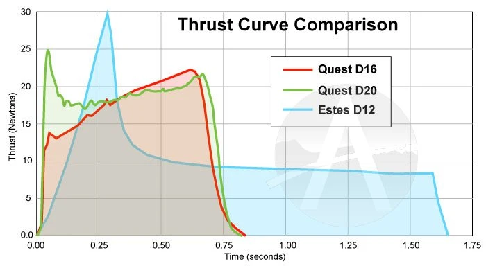 The Quest D20-4 is a great all-around motor for your typicalΒ rockets. It is particularly suited for heavier or larger diameter rockets. It features composite propellant, which has twice the energy as a black powder motor. Same size and diameter as an Estes motor, so it fits all your favorite rockets. But this is for single-stage rockets only, as it cannot be staged.