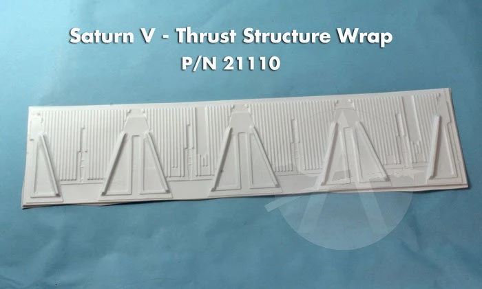 Replacement vacuum-formed wrap for the 1/70th Scale Saturn V kit. This is the “Thrust Structure wrap.” It goes at the very bottom of the big tube on the Apogee model rocket kit.