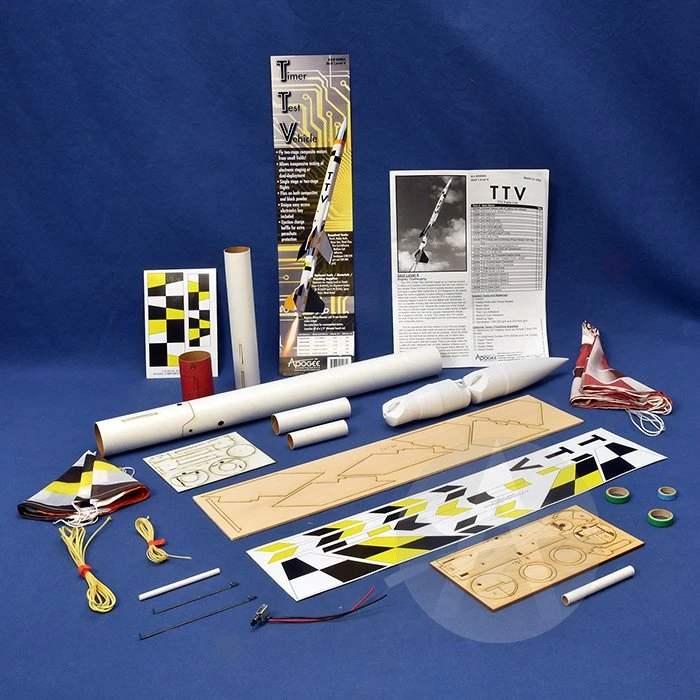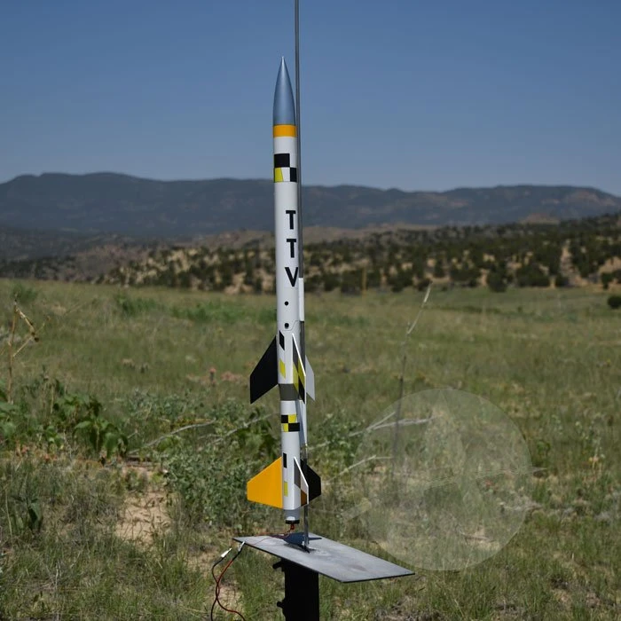 The “Timer Test Vehicle” (TTV) is specifically designed to give you an economical way to try out your electonic staging timers before you commit to putting them in an expensive high power rocket. It can also be flown as a single-stage rocket for added enjoyment.
